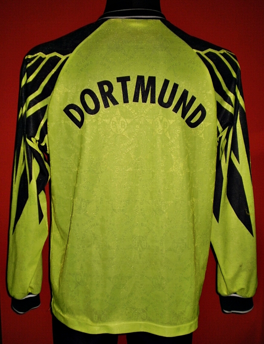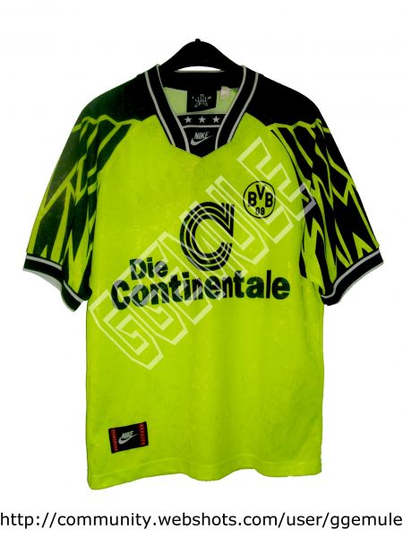 1994 - 1995 Borussia Dortmund home football shirt. Primera camiseta del Borussia Dortmund de la temporada 1994/95 de manga corta.