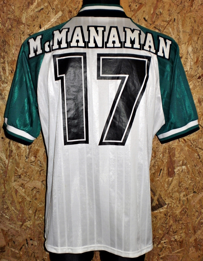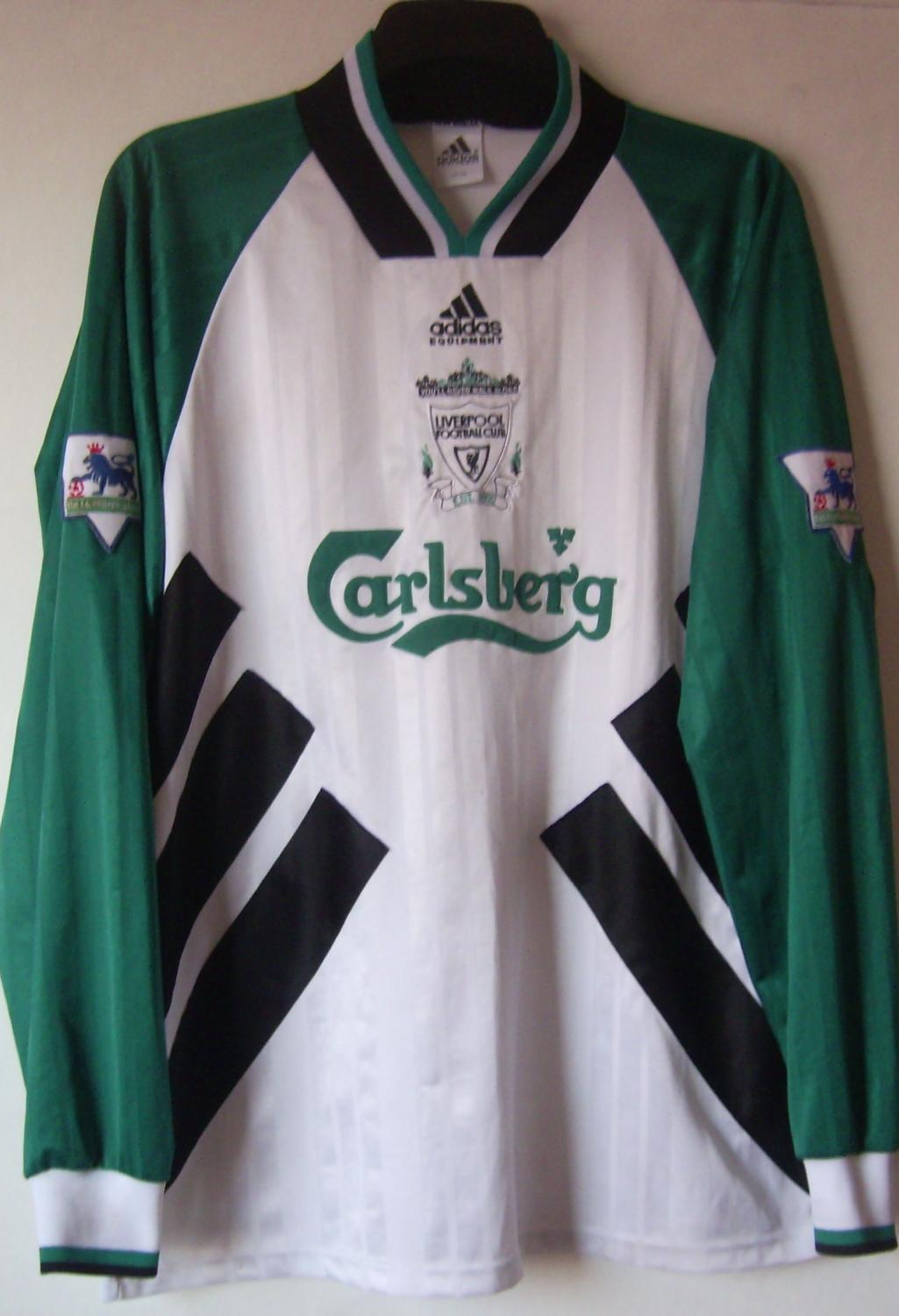 Away match worn shirt from season 1993-1995 with large Carlsberg sponsor adopted. No long sleeved replicas ever produced.